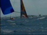 Le parrain de l'équipe étudiante EPA Team Voile Centrale Nantes inaugure le bateau à grands coups de Champagne.