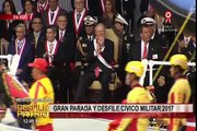 Mandatario se trasladó en un vehículo del Estado hasta la zona del desfile, rodeado de personal de seguridad y ante la expectativa de los medios