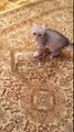 Un chaton entre et sort d'un bocal