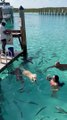 Nurse Sharks Swim With Dog