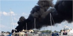 <p>Two boats caught fire at the Cedar Point Marina in Sandusky, Ohio, on August 14.</p><p>According to news reports</a> no one was injured, but both boats were completely destroyed.</p><p>This video shows black smoke and flames rising from the marina. Credit: Twitter/Robert Lipnos (@rlipnos via Storyful)</p><br />