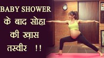 Pregnant Soha Ali Khan Doing YOGA Flaunts Huge Baby Bump
