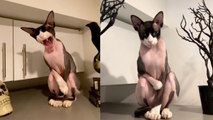 Su raza es Munchkin y posee una alteración genética, por lo que tiene patas mucho más cortas que otros felinos.