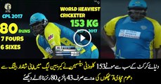 World's Giant Cricketer Cornwall Smashing 80 Runs (43 Balls) With 6 Huge Sixes vs Barbados Tridents