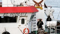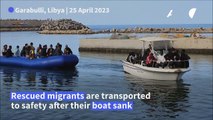 Illegal migrants from Africa arrive at a naval base in Tripoli after being rescued in the Mediterranean Sea, off the Libyan coast.<br />