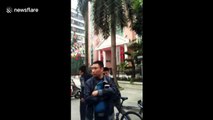 Cash carrier drops money by mistake, people step in to protect it