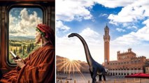 Dante in treno col cellulare, dinosauri a Siena: la Toscana vista da un bambino nel video fatto con l'Ia