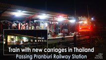 Train with new carriages, passing Pranburi Railway Station