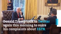 Donald Trump took to Twitter again this morning to voice his complaints about ESPN. Trump's tweet comes after ESPN's Jemele Hill ripped into Trump on Twitter. Hill later apologized, saying she regretted how her comments portrayed ESPN but she did not apologize for the comments themselves.