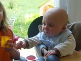 Evan mange ses premiers petits pots