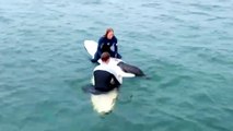 A cool video from the Newsflare archive of a seal playing with surfers in Lacanau, France.<br /><br />The footage, captured in 2014 by by Bertrand Chaussade using a camera mounted on his surf board, shows the small seal, nicknamed ‘You’, repeatedly approaching him and swimming over his board. <br /><br />"He played with us for the whole morning! He would climb on my board, ask for strokes and push me over. It was like playing with a little dog, it was a very playful and loving animal. It was a beautiful encounter and a magical moment!" Bertrand later wrote online.<br /><br />++CLIENTS PLEASE NOTE: MUSIC IS ROYALTY FREE++<br />Music: ‘Guts and Bourbon' by Kevin MacLeod<br />Licensed under Creative Commons: By Attribution 3.0