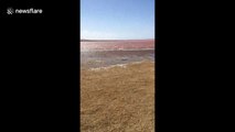 Salt lake in China turns pink