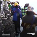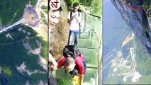 Footage has emerged of cleaners abseiling down one of China's famous glass-bottom bridges to pick up rubbish at the end of national golden week holidays.<br /><br />The video, filmed in Zhangjiajie city in northwestern Hunan Province on October 8, shows a man abseiling down from a 1,400-metre-high glass bridge to pick up rubbish from the cliff face.<br /><br />According to local news, four professional cleaners were sent to clean up as the national holiday came to an end.<br /><br />The cleaning work would last for a month, local reports said.
