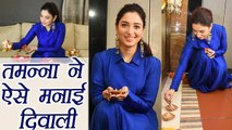 Diwali is here and Bollywood already celebrating the festival of lights with full enthusiasm. Watch here Baahubali actress Tamannah Bhatia Celebrating Diwali at her home with media. Watch here what she has to say on the special occasion and much more in this video.