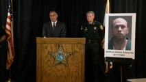 The man, dressed in braces and a t-shirt covered in swastikas, was surrounded by protesters outside the event at the University of Florida on 19 October.