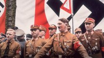 The man, dressed in braces and a t-shirt covered in swastikas, was surrounded by protesters outside the event at the University of Florida on 19 October.