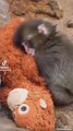 Pet Monkey Hugging Kitten After They Become Best Friens