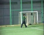 This is the hilarious moment a bungling goalkeeper celebrated a dramatic penalty shootout miss - only for the ball to bounce back into the net off the crossbar in a freak goal.<br /><br />The match between Bangkok Sports Club and Satri Angthong had gone to a shootout after normal time ended 2-2 on October 21.<br /><br />The cup game was in the sudden death stage and tied at 19-19 when the last man - the goalkeeper - stepped up to take a spot kick for Bangkok Sports.<br /><br />They hit the crossbar which sent the opposition goalkeeper running away and jumping in celebration, while the penalty taker held his head in despair.<br /><br />But the ball flew into the air and when it landed the backspin caused it to slowly bounce back into an empty goal as keeper frantically ran back to try to save it. <br /><br />Emotions quickly changed and it was the goalkeeper who threw the ball down in anger while the scorer celebrated his freak goal.<br /><br />Spectator Phakawat Kunpatee, 18, had been watching his friends take part in the game when he recorded the lucky watche-over-again penalty.<br /><br />He said: ‘’The penalty shoot out was going on for a long time. Both teams were scoring every time. They were good quality.<br /><br />‘’Then it looked like the other team had lost because they missed. Everybody thought it was over and the crowd was cheering.<br /><br />‘’The ball bounced and then started going backwards. The crowd saw it but the goalkeeper didn't. It went back into the goal then the other team missed. It was funny, but the goalkeeper felt like a bit silly after. He looked like he was going to cry.’'<br /><br />Satri Angthong then missed their next shot to send Bangkok Sports through to the final to be played later next month.