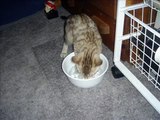 Kitten plays in drinking water bowl