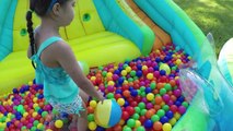 GROSS SLIME BATH SURPRISE TOYS HUNT on Huge Inflatable Water Slide + Golden Egg Surprise G