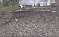 Touching moment, cat the hero helps puppy get out of a ditch