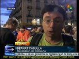 Footage has emerged of people taking to the streets of Barcelona to celebrate the declaration of independence approved by the Catalan Parliament today.<br /><br />The video shows hundreds of protesters waving Esteladas (the pro-independence flag) as they walk from the Parliament building to Sant Jaume square. <br /><br />Soon after the vote at the regional parliament, the Spanish Senate immediately voted to enact Article 155 of the constitution to impose direct rule over Catalonia.