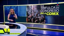 A empujones, con extintores y botellazos, dieron portazo en el Congreso de la CDMX