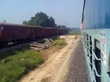 Date: 30/10/2011<br />Late running 15707 Up Katihar(KIR) - Amritsar(ASR) Amrapali Express hauled by SGUJ WDP-4 20084 screams past a stationary Kolkata bound GD WDM-3A hauled Purvanchal Express.This is a typical single line crossing. Doubling work as the was in progress at that time last year.Now this section is fully doubled and operational.