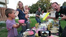 We had a celebration dinner with the Tannerites and it FAILED! Subscribe: to Join our OHANA! Watch more Videos like this: \r<br>\r<br>Johnny and Jase were taunting eachother when we started dinner and a few simple jabs turned into the biggest food fight we have ever been in! It was disgusting but will probably be one of our most cherished experiences with the tanners! (because we had to wear their clothes home)\r<br>Welcome to The Ohana Adventure, we post daily vlogs!\r<br>\r<br>We are a crazy family of 8; we believe in doing hard things, spontaneous adventures, laughing together, & trying new things! \r<br>\r<br>Heres a little about our Family; we are from Hawaii and recently moved to the mainland to explore new lands & experience all that this beautiful world has to offer. \r<br>Mom - Rachel\r<br>Dad - Jase\r<br>Klai 13\r<br>Rykel 11\r<br>Shae 9\r<br>Wyatt 8\r<br>Evelin 6\r<br>Cora 4\r<br>\r<br>Thanks for joining us, Check out these incase you missed something:\r<br>YESTERDAYS VIDEO: \r<br>SURPRISE VID: \r<br>\r<br>FOLLOW OUR ADVENTURES:\r<br>FACEBOOK: \r<br>INSTAGRAM: \r<br>PINTEREST: \r<br>EMAIL: theohanaadventure@gmail.com\r<br>\r<br>Want to send us something?! We love getting stuff in the mail & may feature it on one of our videos: \r<br>The Ohana Adventure\r<br>520 North Main St. STE #439\r<br>Heber City, UT 84032\r<br>\r<br>MAHALO FOR STOPPING BY!\r<br>Rach & Jase & Ohana\r<br>\r<br>Music: i free music, youtube royalty free music from bensound.com or freestockmusic.com\r<br>\r<br>Cont us for business inquiries, reviews and collaborations: theohanaadventure@gmail.com \r<br>\r<br>#theohanaadventure #rachbennett #jasebennett #vlogger #youtubecreator #youtuber #ohana #familyfirst #entrepreneurfamily #creator #dailyvlogger #subscribe #youtubekids #watchthis