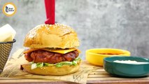 Bakery Style Burger Recipe By Food Fusion <br /> <br />Ingredients: <br /> <br />Ingredients: <br />• Chicken boneless cubes 500 gms <br /> <br />• Lal mirch powder (Red chili powder) 1 tsp or to taste <br />• Haldee powder (Turmeric powder) ½ tsp <br /> <br />• Dhania powder (Coriander powder) 1 & ½ tsp <br />• Zeera (Cumin seeds) roasted & crushed 1 tsp <br /> <br />• Namak (Salt) 1 tsp or to taste <br />• Zarda ka rang (Yellow food color) ¼ tsp <br /> <br />• Adrak lehsan paste (Ginger garlic paste) 1 & ½ tsp <br />• Kacha papita (Raw papaya) paste 1 tsp <br /> <br />• Hari mirch (Green chilies) crushed 6 <br />• Dahi (Yogurt) 3 tbs <br /> <br />• Oil 2 tbs <br />Assembling: <br />• Burger bun <br /> <br />• Mayonnaise <br />• Cooked chicken <br /> <br />• Tomato ketchup <br />• Bund gobhi (Cabbage) shredded <br /> <br />• Tamatar (Tomato) deseeded & strips <br />• Shimla mirch (Capsicum) deseeded & strips <br /> <br />• Mayonnaise <br />• Tomato ketchup <br /> <br />Directions: <br /> <br />In chicken boneless cubes,red chili powder,turmeric powder,coriander powder,cumin seeds,salt,yellow food color,ginger garlic paste,raw papaya paste,green chilies and yogurt,mix well and marinate for 2 hours. <br /> <br />In frying pan,add oil and marinated chicken,mix well for 2-3 minutes,cover and cook on low flame for 5-6 minutes then cook on high flame until water dries up. <br /> <br />On burger bun,spread mayonnaise,add cooked chicken,tomato ketchup,cabbage,tomato,capsicum, mayonnaise,tomato ketchup and cover with top bun & serve.