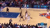 Tim Hardaway Jr. drives into the paint and pulls up for a jumper that connects plus the foul.