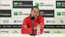 Belarus Fed Cup player Aryna Sablenka talks after the draw for the 2017 Fed Cup by BNP Paribas Final