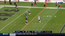 New England Patriots defensive end Chandler Jones hits the ball out of Marcus Mariota's hand and Akiem Hicks returns it for the score.