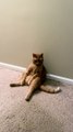 Le chat Mok est assis comme un humain contre une vitre et contemple tranquillement ce qu'il se passe autour de lui.