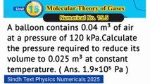 A balloon contains 0.04 m3 of air at a pressure of 120kPa. Calculate the pressure required to reduce its volume to 0.025 m3 at constant temperature.