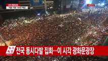 [앵커]<br />박근혜 대통령의 퇴진을 촉구하는 촛불 집회가 이 시각 현재 전국 100여 곳에서 동시다발적으로 열리고 있습니다.<br /><br />서울 60만 명을 포함해 전국적으로 95만 명의 시민들이 광장을 가득 메웠는데요.<br /><br />서울 광화문광장에 나가 있는 YTN 중계차 연결합니다. 양시창 기자!<br /><br />이번 주 역시 상당히 많은 시민이 모인 것 같은데요, 지금 행진이 진행 중이죠.<br /><br />[기자]<br />광화문 광장 집회 참가자들은 약 1시간 반 정도 전부터 청와대 방향으로 행진을 시작했습니다.<br /><br />행진이 진행되면서 시민들로 빼곡했던 광화문 광장은 다소 한산해졌습니다.<br /><br />행진을 기다리는 시민들의 자율적인 발언이 이어지고 있습니다.<br /><br />주최 측 추산 60만 촛불 시민들의 대이동이 있었던 것입니다.<br /><br />일부 집회 참가자들은 미리 내자동 방향으로 이동하기도 했습니다.<br /><br />앞서 주최 측은 이른바 학익진 형태로 청와대를 에워싸겠다고 밝혔습니다.<br /><br />하지만 법원이 청와대 주변 행진을 일부만 허용하면서 율곡로와 사직로를 따라 내자동 로터리까지만 진입이 가능한 상황입니다.<br /><br />행진을 마친 참가자들은 이후 다시 광화문광장에 모여 밤 11시까지 정리집회를 할 예정입니다.<br /><br />[앵커]<br />이미 집회 참가자들이 서울 내자동 로터리를 가득 메우고 있다고 하는데요.<br /><br />현장 상황 어떻습니까?<br /><br />[기자]<br />경찰 차벽이 설치된 내자동 로터리에는 많은 참가자가 현재 몰려 있습니다.<br /><br />먼저 이동한 6천여 명의 시민들에 이어 본 집회 행진 대열까지 더해지면서 내자동 로터리를 중심으로 율곡로는 발 디딜 틈이 없을 정도로 시민들이 모여 있습니다.<br /><br />경찰 추산으로 내자동 로터리를 중심으로 6만5천 명에 달하는 시민이 몰린 것으로 집계됐는데요.<br /><br />참가자들은 행진을 진행하면서 양손에 촛불과 피켓을 들고 박 대통령 하야를 외치고 있습니다.<br /><br />또 대통령 구속을 촉구하고 경찰통제선을 설치한 경찰을 향해 비키라고 외치기는 시민들도 있습니다.<br /><br />점점 더 많은 사람이 몰리면서 긴장감도 조금씩 커지고 있는 분위기입니다.<br /><br />만일의 사태를 대비해 근처에는 구급차도 배치된 상황입니다.<br /><br />경찰은 행진 차단을 위해 버스로 빼곡하게 차벽을 세웠고 청와대를 향하는 골목에는 바리케이드와 경찰통제선이 설치했습니다.<br /><br />애초 집회 주최 측이 내자동 로터리를 넘어 청운동 동사무소까지 집회 행진 신고를 했던 만큼 충돌 가능성을 배제할 수 ... (중략)<br /><br />▶ 기사 원문 : http://www.ytn.co.kr/_ln/0103_201611192154373786<br />▶ 제보 안내 : http://goo.gl/gEvsAL, 모바일앱, 8585@ytn.co.kr, #2424<br /><br />▣ YTN 유튜브 채널 구독 : http://goo.gl/Ytb5SZ<br /><br />[ 한국 뉴스 채널 와이티엔 / Korea News Channel YTN ]