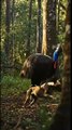 Hungry wild red fox tries to steal dog chew
