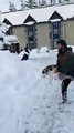 Erzurum'da, "Rosha" isimli yedi aylık "Husky" cinsi Sibirya Kurdu'nun ilk kez kar görme sevinci renkli görüntüler oluşturdu.