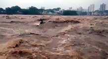 Surf dans une rivière en crue
