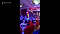 Bizarre footage from China of hairdressers standing in a circle and slapping themselves.<br /><br />In the clip, shot in Shenzhen City in Guangdong Province on November 13, the salon staff can be seen hitting their own faces repeatedly. <br /><br />According to reports, the salon management asked them to do so because their performance declined.<br /><br />++CLIENTS PLEASE NOTE: THIS VIDEO HAS BEEN LOOPED++