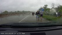 Man Clipped by Truck Slides BACKWARDS Across Three Lanes on Highway (Low)