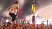 Le chanteur attrape une bière au vol en plein concert !