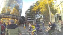 Critical Mass 09-2013 Peek und Cloppenburg - Autos fahren hupend in den Verband.