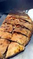 Slicing up a huge calzone 😮💨