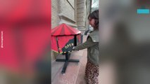 Driver spins out of control on icy road during rush hour