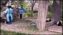 Panda cubs playing with keepers (part 3)