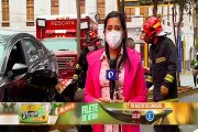 Chofer de la unidad impactó contra una moto y dejó a dos personas heridas. Tras el hecho, el hombre se dio a la fuga.