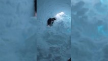 A kindhearted dog rescues two chickens buried and trapped under snow last winter in Nova Scotia. <br /><br />The owners of Chase the dog - who have had him since he was a 10-week-old puppy - had trained him to help the chickens in case they got stuck in the snow.<br /><br />This happened in February 2017 during a cold snap, when Chase dug out two buried chickens from the snow and nudged them back towards their coup. <br /><br />Writes the filmer and Chase's co-owner: "He kept an eye on the chickens and would help protect them from wild animals. He watched over them since they were tiny chicks - he is a kindhearted dog.<br /><br />The owner says Chase is a Labrador Retriever - a mix of Golden Labrador and Golden Retriever, sometimes called a Goldador.