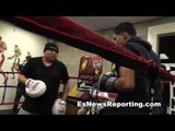 Robert Garcia Working Mitts With Josesito Lopez - esnews boxing