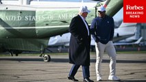President Trump Exits Helicopter And Walks With Philadelphia Eagles Running Back Saquon Barkley